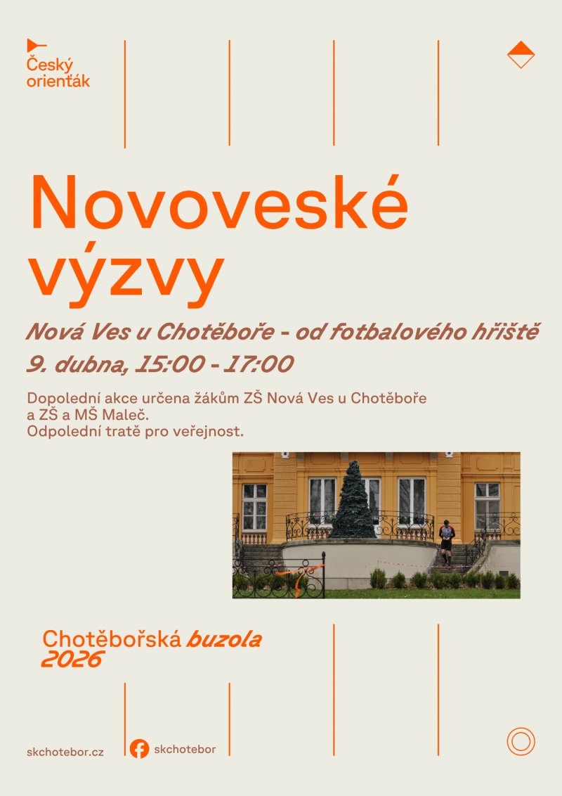 Ve čtvrtek 9. 4. si budete moci opět vyzkoušet své orientační schopnosti při další akci projektu Chotěbořská buzola. V Nové Vsi u Chotěboře pro vás organizátoři připraví 3 tratě různé obtížnosti a délky. V dopoledních hodinách se na krátkých okruzích vystřídají žáci základních škol.